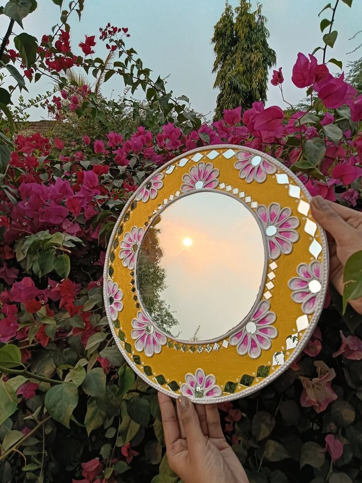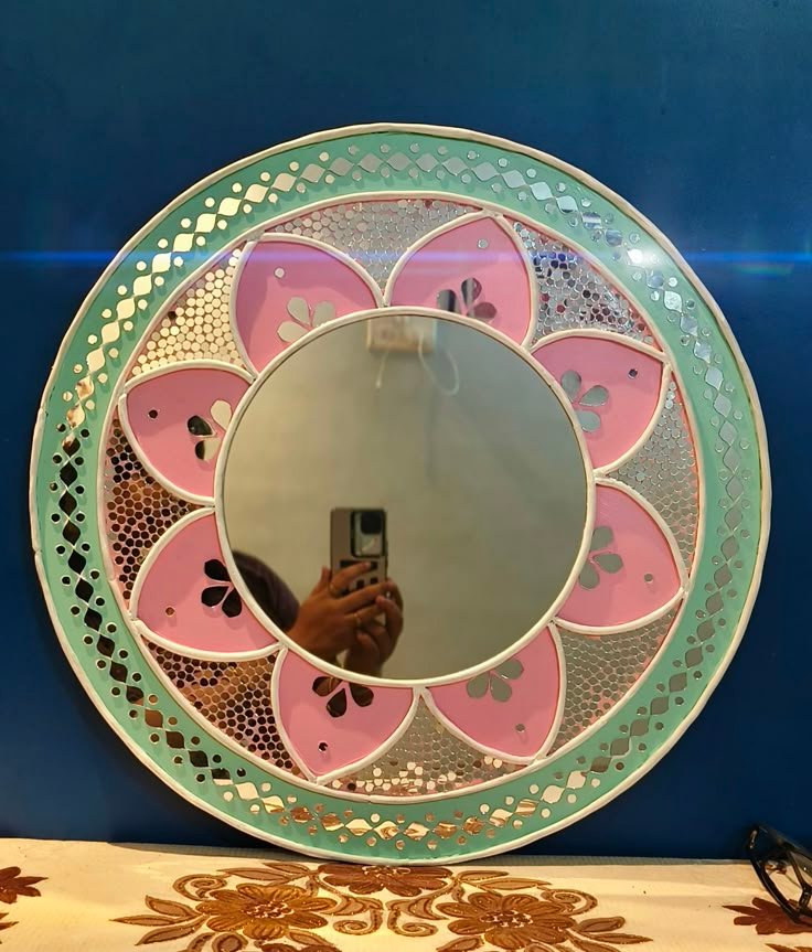 Traditional Lippan mirror art with intricate mud detailing.